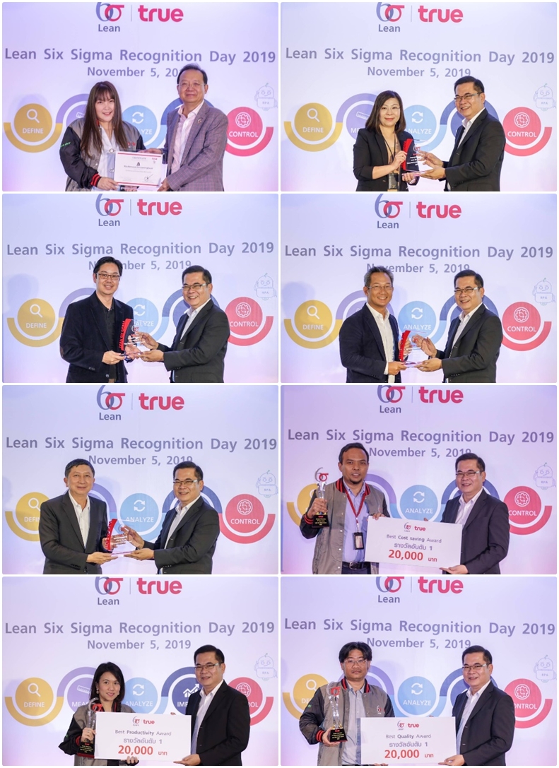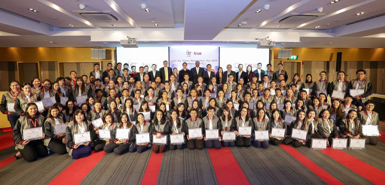 นับเป็นปีที่ 6 แล้วที่ กลุ่มทรู ได้นำ Lean Six Sigma มาใช้ในการปรับปรุงกระบวนการทำงานในแต่ละแผนก นับจากปี 2014 เป็นต้นมา จะเห็นได้ว่ากลุ่มทรูสามารถลดต้นทุนในการดำเนินงานได้ถึง 6,625 ล้านบาท จากความร่วมมือกว่า 20 หน่วยงาน และสามารถผลิตบุคลากร Black Belt และ Green Belt ที่มีส่วนในการสร้างความสำเร็จนี้กว่า 700 คน เพื่อเป็นการขอบคุณในความทุ่มเทของทุกคน สายงาน Group Quality Assurance จึงได้จัดงาน Lean Six Sigma Recognition 2019 เพื่อประกาศเกียรติคุณและมอบรางวัลให้แก่บุคลากรที่เข้าร่วมโครงการและสามารถทำผลงานโครงการได้ดีเยี่ยม ลดต้นทุนการทำงานให้กับหน่วยงาน ร่วมกันปรับปรุงและพัฒนาองค์กรให้มีประสิทธิภาพมากขึ้น ได้เป็นBlack Belt และ Green Belt โดยมีคณะผู้บริหารร่วมแสดงความยินดีกับทีมงานชาวทรูทุกคน