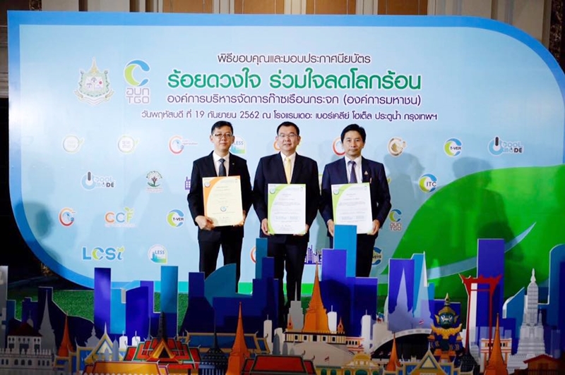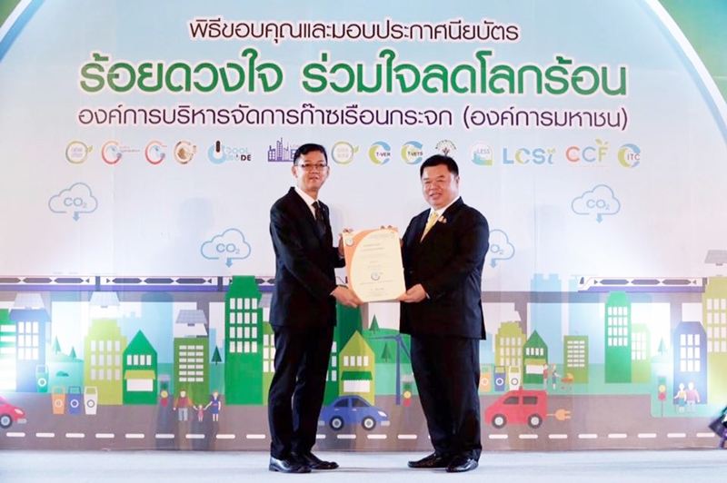 ในงาน “ร้อยดวงใจ ร่วมใจลดโลกร้อน” ประจำปี 2562 ภายใต้แนวคิด “ลดโลกร้อนวันนี้ เริ่มต้นที่ตัวเรา” (It’s perfect time to start action) เพื่อเป็นการเชิดชูเกียรติ รวมทั้งสร้างขวัญกำลังใจให้กับผู้ประกอบการและภาคส่วนต่างๆ ที่เป็นตัวอย่างที่ดีในการบริหารจัดการและลดการปล่อยก๊าซเรือนกระจกภายในประเทศโดยองค์การบริหารจัดการก๊าซเรือนกระจก (องค์การมหาชน) หรือ อบก. กระทรวงทรัพยากรธรรมชาติและสิ่งแวดล้อม