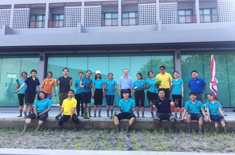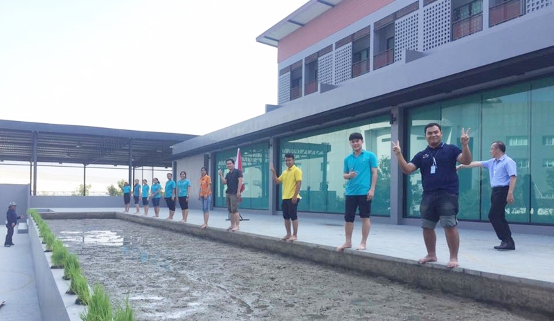 พนักงานที่เข้าร่วมกิจกรรมต่างมีความสุข สนุกกับทำนาพร้อมเรียนรู้ไปด้วยกัน
