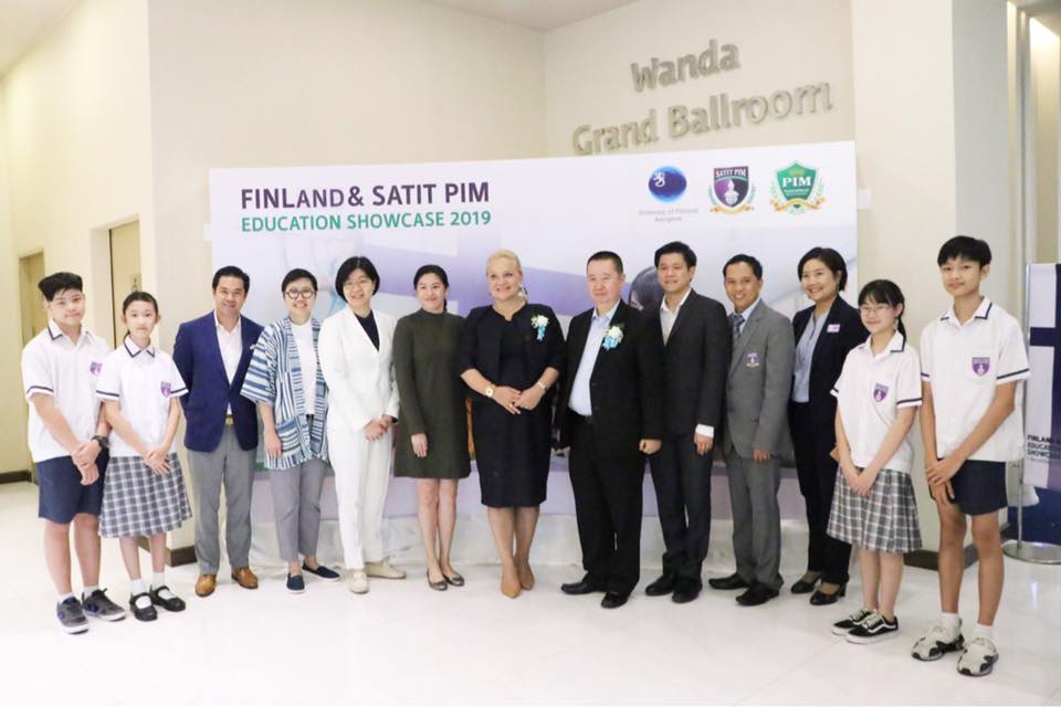 สถานทูตฟินแลนด์ ร่วมกับ โรงเรียนสาธิตสถาบันการจัดการปัญญาภิวัฒน์ (สาธิต พีไอเอ็ม) จัดเวทีเสวนาการศึกษา “Finland and Satit PIM Education Showcase 2019” แลกเปลี่ยนมุมมองด้านการพัฒนาคน สะท้อนการสร้างคนคุณภาพ โดยได้รับเกียรจาก H.E. Ms. Satu Suikkari-Kleven เอกอัครราชทูตสาธารณรัฐฟินแลนด์ ประจำประเทศไทย (กลาง) เป็นประธานในการเปิดงาน โดยคุณสยาม โชคสว่างวงศ์ ผู้ถือใบอนุญาตโรงเรียนสาธิต พีไอเอ็ม และรองอธิการบดี ฝ่ายบริหารสถาบันการจัดการปัญญาภิวัฒน์ (ที่6จากซ้าย) ให้การต้อนรับ สำหรับเสวนา “The Journey of Finnish Creative Education”