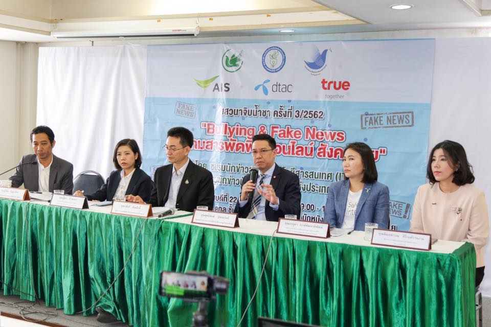 ในโอกาสนี้ กลุ่มทรู โดย คุณพิมลพรรณ ศิริวงศ์วานงาม ผู้อำนวยการ สายงานสื่อสารองค์กรและประชาสัมพันธ์การตลาด ได้ร่วมเสวนากับผู้บริหารจากเอไอเอส ดีแทค และตัวแทนสื่อสร้างสรรค์ เพื่อแลกเปลี่ยนมุมมอง พร้อมให้ข้อมูลเกี่ยวกับบทบาทของกลุ่มทรู ในการนำศักยภาพด้านเทคโนโลยีการสื่อสารมาร่วมรับผิดชอบ แก้ไขปัญหา Cyber Bullying และ Fake News