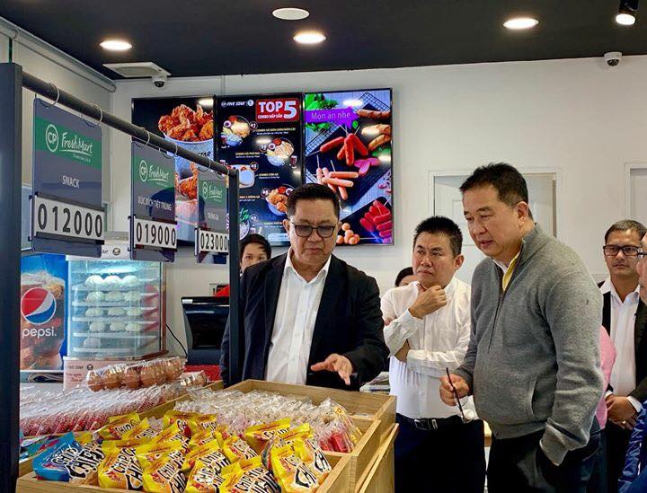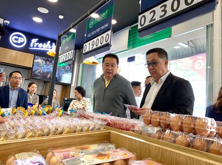 คุณสุขสันต์ เจียมใจสว่างฤกษ์ รองประธานคณะกรรมการบริหาร ซีพีเอฟ เยี่ยมชม CP Fresh Mart ณ เมืองเบียนฮหว่า จังหวัดด่องนาย ซึ่งเป็นสาขาใหม่และแต่งร้านในรูปแบบใหม่ มีผลิตภัณฑ์ซีพีจำหน่ายมากมาย พร้อมกับมีมุมห้าดาวแบบนั่งทานในร้านให้บริการ เพื่อสร้างความเชื่อมั่นให้กับผู้บริโภคชาวเวียดนามได้เข้าถึงผลิตภัณฑ์สินค้าคุณภาพ สะอาด ปลอดภัย โดยมี คุณสุพัฒน์ ศรีธนาธร รองกรรมการผู้จัดการบริหาร ธุรกิจผลิตภัณฑ์อาหาร และ คุณสุทธิชัย สุทธิพล รองกรรมการผู้จัดการอาวุโส ธุรกิจ CP Fresh Mart ซี.พี. เวียดนาม ให้การต้อนรับ