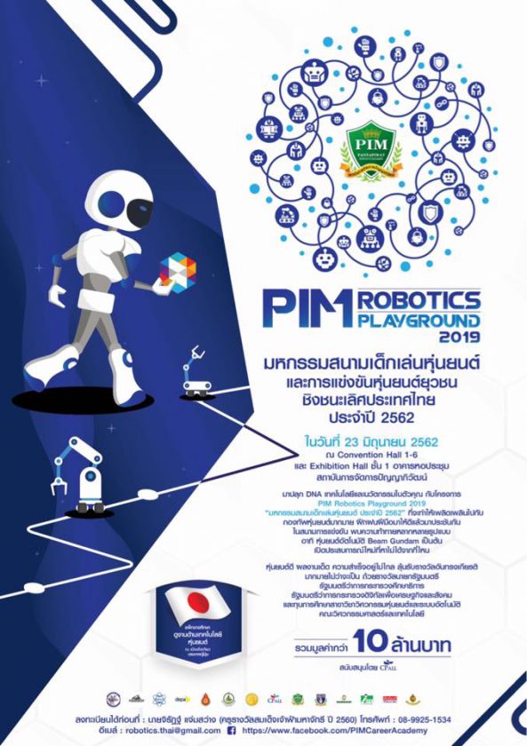 เมื่อวันอาทิตย์ที่ 23 มิถุนายน 2562 ซีพี ออลล์ และสถาบันการจัดการปัญญาภิวัฒน์ (พีไอเอ็ม) จัดงาน PIM Robotics Playground มหกรรมสนามเด็กเล่นหุ่นยนต์และการแข่งขันหุ่นยนต์ยุวชนชิงชนะเลิศประเทศไทย ประจำปี 2562 งานแข่งขันหุ่นยนต์ที่ใหญ่ที่สุดในประเทศไทย จัดขึ้นเพื่อส่งเสริมให้นักเรียนเกิดการเรียนรู้ด้านการเขียนโปรแกรมขั้นสูง มีทักษะในการสร้างสิ่งประดิษฐ์หรือจัดทำโครงงานที่ประยุกต์ใช้งานได้ นำไปสู่การประกอบอาชีพหรือศึกษาต่อในอนาคต พร้อมพบกับกองทัพหุ่นยนต์มากมาย ความท้าทายในสนามแข่งขัน พร้อมรับถ้วยรางวัลอันทรงเกียรติ ทุนการศึกษาสาขาวิชาวิศวกรรมหุ่นยนต์และระบบอัตโนมัติ แพ็คเกจศึกษาดูงานด้านเทคโนโลยีหุ่นยนต์ ณ เมืองโตเกียว ประเทศญี่ปุ่น รวมมูลค่ารางวัลกว่า 10 ล้านบาท ณ Convention Hall 1-6 อาคารหอประชุมปัญญาภิวัฒน์ สถาบันการจัดการปัญญาภิวัฒน์ ถนนแจ้งวัฒนะ