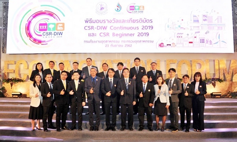 เมื่อวันจันทร์ที่ 23 กันยายน 2562 กรมโรงงานอุตสาหกรรม จัดพิธีมอบรางวัลและเกียรติบัตรโครงการส่งเสริมโรงงานอุตสาหกรรมให้มีความรับผิดชอบต่อสังคมและชุมชนอย่างยั่งยืน (CSR-DIW Continuous 2019 และ CSR Beginner 2019) ประจำปี พ.ศ. 2562ให้แก่โรงงานอุตสาหกรรมที่ผ่านเกณฑ์มาตรฐาน CSR-DIW รวมจำนวน 358 ราย และโรงงานที่ผ่นเกณฑ์มาตรฐาน CSR Beginner รวมจำนวน 310 ราย ณ โรงแรมมิราเคิล แกรนด์ คอนเวนชั่น กรุงเทพฯ