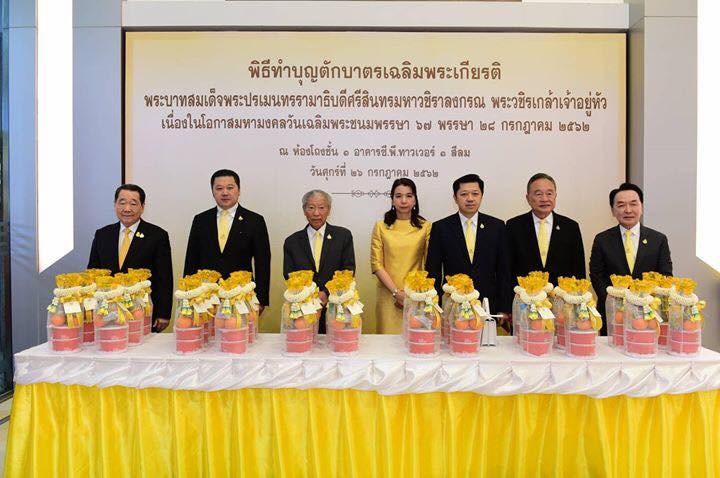 เช้าวันนี้ (๒๖ กรกฎาคม ๒๕๖๒) เครือเจริญโภคภัณฑ์ ร่วมเฉลิมพระเกียรติ และแสดงความจงรักภักดีถวายพระบาทสมเด็จพระปรเมนทรรามาธิบดีศรีสินทรมหาวชิราลงกรณ พระวชิรเกล้าเจ้าอยู่หัว เนื่องในโอกาสวันเฉลิมพระชนมพรรษา ๖๗ พรรษา โดยได้จัดพิธีทำบุญตักบาตรพระสงฆ์ จำนวน ๖๘ รูป นำโดย ท่านประธานอาวุโสธนินท์ เจียรวนนท์ คุณสุภกิต เจียรวนนท์ ประธานกรรมการเครือเจริญโภคภัณฑ์ คุณศุภชัย เจียรวนนท์ ประธานคณะผู้บริหารเครือเจริญโภคภัณฑ์ พร้อมด้วยคณะผู้บริหารระดับสูง