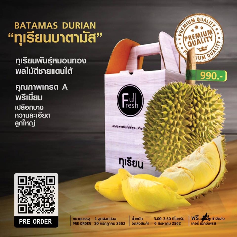 เปิดรับจอง “ทุเรียนบาตามัส” BATAMAS DURIAN (ทุเรียนพันธุ์หมอนทอง) คุณภาพเกรด A พรีเมี่ยม ผลไม้ดีชายแดนใต้ เปลือกบาง หวานละเอียด ลูกใหญ่