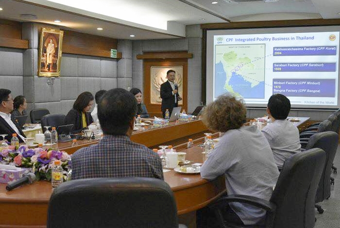 ดร.โรเนลโล่ เอบิล่า ผู้แทนอนุภูมิภาคเอเซียตะวันออกเฉียงใต้ องค์การโรคระบาดสัตว์ระหว่างประเทศ (World Organisation for Animal Health : OIE) พร้อมคณะ เยี่ยมชมโรงงานอาหารสัตว์ปักธงชัย และโรงงานแปรรูปไก่นครราชสีมา เพื่อสังเกตการณ์ความก้าวหน้าในการนำระบบคอมพาร์ทเม้นท์ ที่ซีพีเอฟประยุกต์ใช้กับอุตสาหกรรมอาหารแปรรูปครบวงจรอย่างเป็นรูปธรรม ภายใต้ โครงการปลอดโรคไข้หวัดนก ตามหลักการคอมพาร์ทเม้นท์ของ OIE ตั้งแต่ ปี 2549 จนถึงปัจจุบัน ด้วยแนวคิดที่ว่า “วิธีที่ดีที่สุดก็คือต้องป้องกันตั้งแต่ต้นทาง” โดยมี น.สพ. ดร.อวยชัย พุทธิพงษ์ศิริพร ผู้ช่วยกรรมการผู้จัดการ สำนักวิชาการอาหารสัตว์ และ น.สพ.พยุงศักดิ์ สมยานนทนากุล รองกรรมการผู้จัดการด้านมาตรฐานการผลิตสัตว์ปีก ซีพีเอฟ ให้การต้อนรับและนำคณะเยี่ยมชม