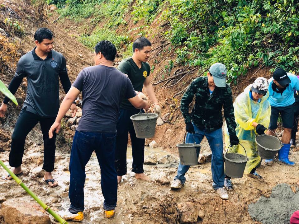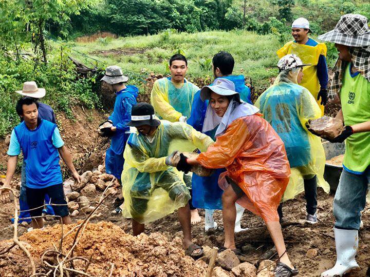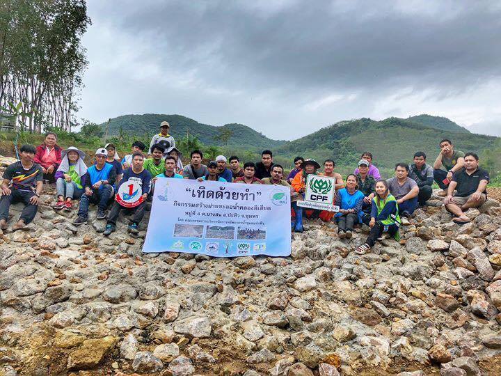 คุณอาลัยลา ภักดี ผู้จัดการสำนักประสานงานระบบมาตรฐาน นำพนักงานซีพีเอฟจิตอาสา ศูนย์ปรับปรุงพันธุกรรมกุ้ง ปะทิว ร่วมกับ คณะกรรมการบริการจัดการทรัพยากรน้ำชุมชนปะทิว อ.ปะทิว จ.ชุมพร จัดกิจกรรมเทิดด้วยทำ สร้างฝายชะลอน้ำคลองสีเสียด ม.4 ต.บางสน อ.ปะทิว จ.ชุมพร เพื่อคืนความอุดมสมบูรณ์ให้ป่า และให้ชุมชนโดยรอบได้ใช้ประโยชน์และเป็นแหล่งน้ำ