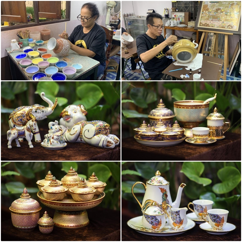 ต่อมาโรงงานมีปัญหา คนที่มีความรู้ก็ไปรับจ้างเขาเขียนลาย คนที่มีทุนหน่อยก็ออกไปทำเอง แล้วมีคนลองเอาไปขายในกรุงเทพฯ ปรากฏว่าขายดี ตอนนั้นพ่อพี่อยู่บ้านนอก เขาเห็นว่าเรามีฝีมือก็เลยตามกลับมาทำเบญจรงค์ที่บ้าน เริ่มจากไม่มีอะไรเลย ทำกันแค่สองคน ต่อมาก็ขยายทำกันเองในครอบครัวก่อน ฝึกลูก ฝึกหลานนี่แหละ แล้วก็ขยายออกไปในพื้นที่ เชิญคนตกงานมาทำด้วยกันเป็นร้อยคนเลย ในชุมชนเขาก็ดีใจ ไม่ต้องออกไปทำงานไกล ไม่เสียค่ารถ ค่าน้ำมัน มารับงานไปทำที่บ้านได้ เราก็ให้ค่าตอบแทนเขาตามฝีมือ ตามผลงาน ตามความยากง่าย