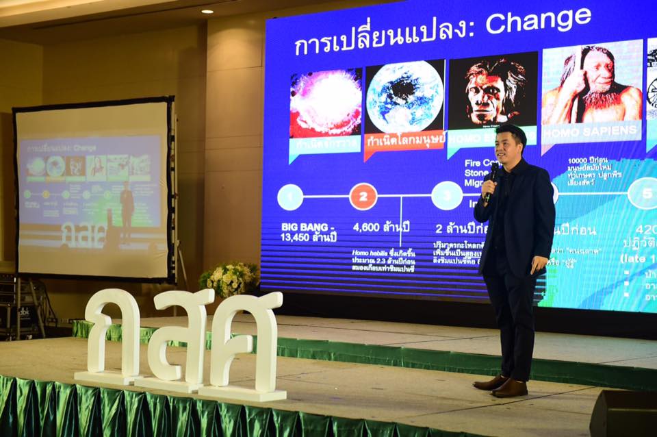 โอกาสนี้ ดร.ธีระพล ถนอมศักดิ์ยุทธ ผู้ช่วยบริหาร สำนักประธานคณะผู้บริหาร เครือเจริญโภคภัณฑ์ และ หัวหน้าคณะผู้บริหาร ด้านนวัตกรรมและความยั่งยืน บมจ.ทรู คอร์ปอเรชั่น ได้รับเกียรติจาก กสศ.เชิญขึ้นเวที เพื่อปลุกพลังนักเรียนนักศึกษาที่ได้รับทุนนวัตกรรมสายอาชีพชั้นสูง” รุ่น 1 ในหัวข้อ “นวัตกรสายอาชีพในยุค Disruptive Technology” โดยชี้ให้ผู้ได้รับทุนนวัตกรรมฯจาก กสศ.เห็นว่าโลกกำลังเปลี่ยนแปลง โดยมีเทคโนโลยีเข้ามา Disrupt ส่งผลให้เกิดการเปลี่ยนแปลงในวิถีชีวิตของทุกผู้คน เปลี่ยนธุรกิจ ฯลฯ ซึ่งผู้ได้รับทุนจะปรับตัวและเตรียมพร้อมรับมือ เพื่อที่จะส่งเสริมโอกาสของตนเองในอนาคตให้มีงานทำในบริษัทต่าง ๆ ทั้งนี้การเรียนในยุคต่อไปคือการเรียนด้วยตัวเองตลอดชีวิต เนื่องจากโลกเปลี่ยนแปลงรวดเร็วจนหลักสูตรการเรียนการสอนตามไม่ทัน