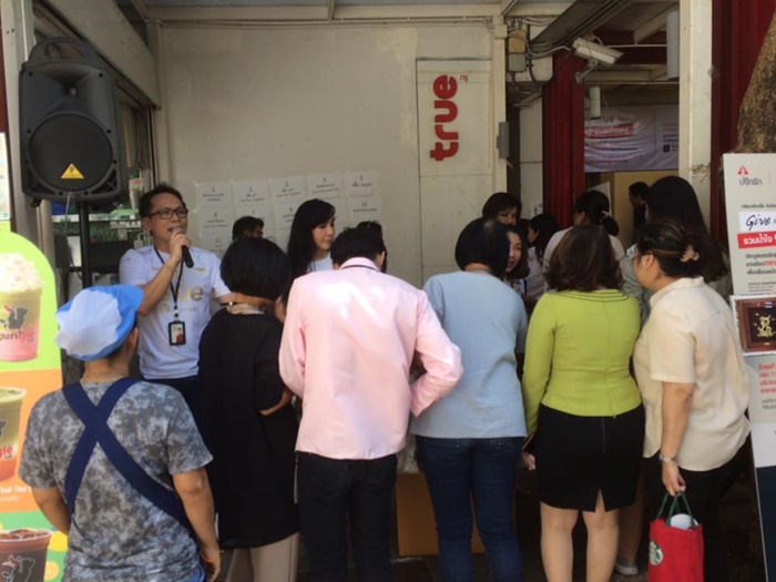 เที่ยงวันนี้ชวนไปดูกิจกรรมดีๆของชาวทรู โดยทีมงานHRทรูจัดกิจกรรมชวนเพื่อนๆชาวทรูที่รัชดาฯร่วมบริจาคเงินเพื่อสมทบเป็นกองทุนสำหรับนำไปช่วยเพื่อนๆชาวทรูที่เจ็บป่วย ทุพลภาพ ซึ่งทรูทำมาอย่างต่อเนื่องหลายปี นอกจากนี้ยังมีการนำของรักของผู้บริหารทรูที่บริจาคมาเพื่อประมูลนำเงินเข้ากองทุนรวมทั้งจัดตลาดนัดมือสองนำเงินมาสมทบช่วยพนักงาน