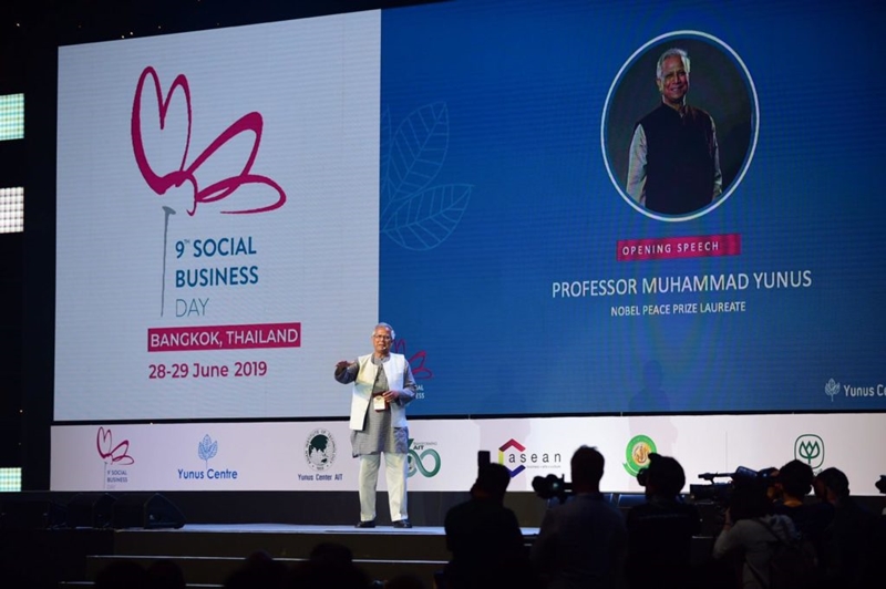 “ศ.มูฮัมหมัด ยูนุส” นักเศรษฐศาสตร์เจ้าของรางวัลโนเบล สาขาสันติภาพ และ ศูนย์ยูนุส ธากา สำนักงานใหญ่ บังกลาเทศ ร่วมกับ ศูนย์ยูนุส สถาบันเทคโนโลยีแห่งเอเชีย (AIT), ซี อาเซียน, ศูนย์ยูนุสธุรกิจเพื่อสังคมแห่งประเทศไทย มหาวิทยาลัยเกษตรศาสตร์ และหน่วยงานริเริ่มธุรกิจเพื่อสังคมแห่งประเทศไทย (TSBI) จัดงาน“Social Business Day ครั้งที่ 9” ภายใต้แนวคิด “Making Money is Happiness, Making Other People Happy is Super Happiness” หรือ “การทำเงินเป็นความสุข แต่การทำให้ผู้อื่นมีความสุข เป็นความสุขยิ่ง” ขึ้นเป็นครั้งแรกในประเทศ ระหว่างวันที่ 28-29 มิถุนายน 2562 ณ โรงแรมเซ็นทารา แกรนด์ เซ็นทรัลเวิลด์ กรุงเทพฯ และมีองค์กรภาคเอกชนไทยร่วมสนับสนุน อาทิ เครือเจริญโภคภัณฑ์ และบางจาก เป็นต้น