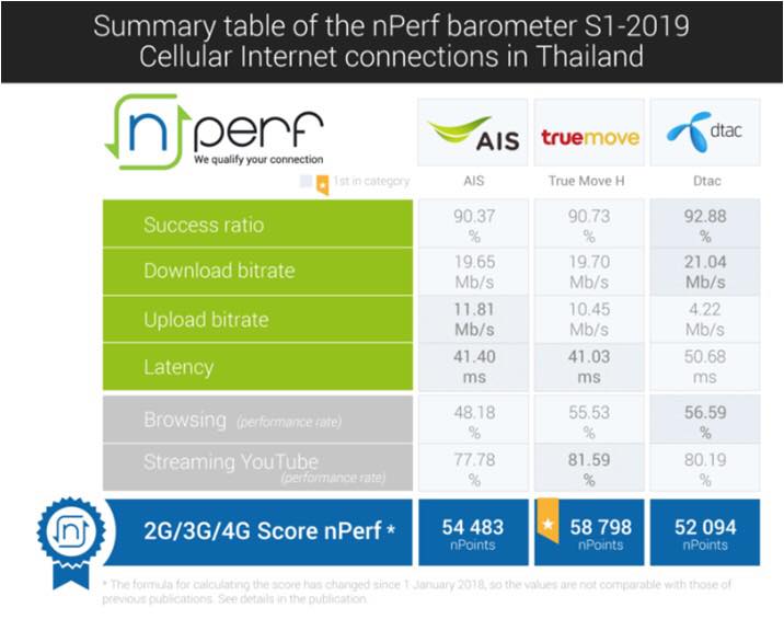 nPerf ผู้ให้บริการทดสอบความเร็วการเชื่อมต่ออินเทอร์เน็ตจากประเทศฝรั่งเศส ได้รายงานผลการทดสอบความเร็วโมบายล์ดาต้าของผู้ให้บริการในประเทศไทยช่วงครึ่งปีแรกของปี 2019 จัดอันดับให้ “ทรูมูฟ เอช” เป็น Best Global Mobile Performance หรือผู้ให้บริการโมบายล์ดาต้าอันดับ 1 ในประเทศไทย