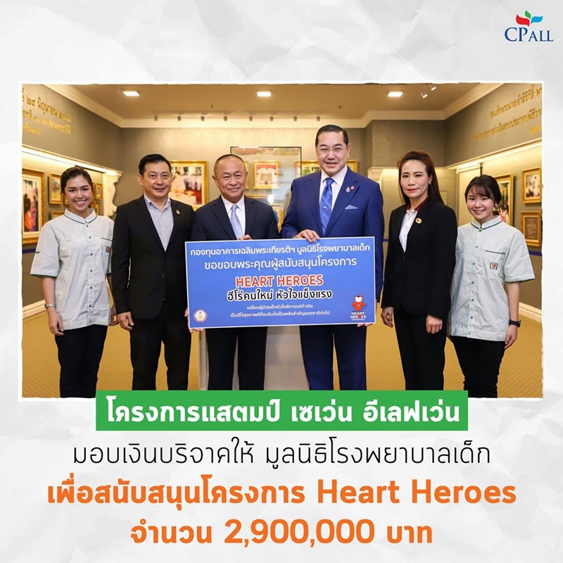 รวมถึงโครงการแสตมป์เซเว่นฯช่วยผ่าตัดลิ้นหัวใจเด็ก ผ่านรายการ ‘แสตมป์เซเว่น อีเลฟเว่น ประจำปี 2561’ จำนวน 2,900,000 บาท โดยมอบให้กับมูลนิธิโรงพยาบาลเด็ก เพื่อช่วยต่อชีวิตผ่าตัดลิ้นหัวใจให้กับผู้ป่วยเด็ก จากโครงการ Heart Heroes ฮีโร่คนใหม่ หัวใจแข็งแรง