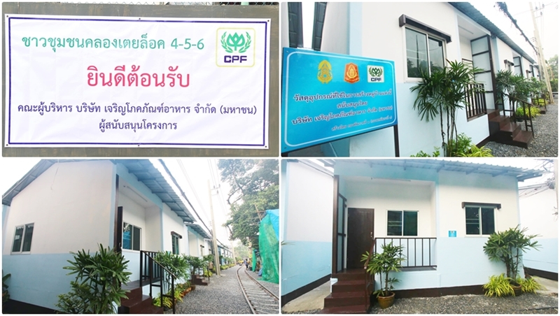 CPF ร่วมสนับสนุนงบในการซ่อมแซมและสร้างบ้านพักให้กับผู้ยากไร้ในชุมชนคลองเตย เฟสแรก จำนวน 40 หลัง ในชุมชนคลองเตยล็อค 4-5-6 คิดเป็นมูลค่า 5.2 ล้านบาท โดยบ้านทุกหลังของโครงการมีแบบแปลนเหมือนกันหมด ในรูปแบบหมู่บ้านสมัยใหม่เพื่อพัฒนาชุมชนแออัดให้มีสุขอนามัยที่ดี ปลอดภัย และน่าอยู่ วันนี้เป็นการมอบบ้านพักที่สร้างเสร็จให้เจ้าของบ้าน 29 หลัง ส่วนอีก 11 หลัง อยู่ในระหว่างการจัดสร้างและเตรียมส่งมอบให้เจ้าของบ้านต่อไป