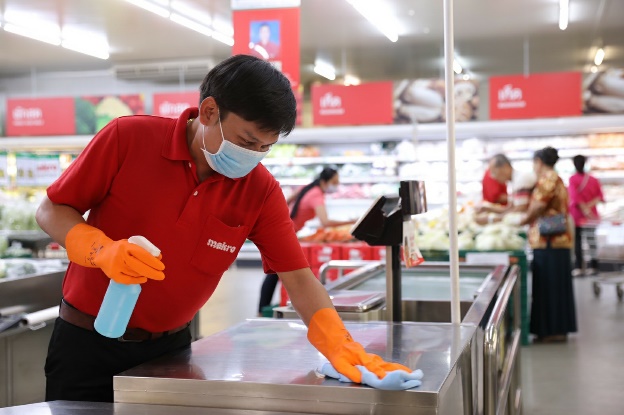 บริษัท สยามแม็คโคร จำกัด (มหาชน) ยกระดับความเข้มข้นมาตรการป้องกันไวรัสโควิด-19 เพิ่มจุดคัดกรองวัดอุณหภูมิพนักงานและลูกค้าทุกคน ก่อนเข้าสาขา พร้อมเพิ่มความถี่ในการทำความสะอาด ฆ่าเชื้อโรค รณรงค์สวมหน้ากากและถุงมือ สร้างความมั่นใจให้ผู้ประกอบการ ย้ำการเป็นผู้นำธุรกิจค้าส่งที่ปลอดภัยใส่ใจคุณภาพชีวิตลูกค้า