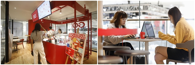 สำหรับสายแช่ ไม่อยาก GO ก็นั่งชิวๆ ได้ที่สาขาสามย่านมิตรทาวน์ เพราะเปิด 24 ชั่วโมง และดีไซน์ของร้านที่ออกแบบได้อย่างลงตัวในพื้นที่เพียง 66 ตารางเมตร ขณะที่มีประโยชน์ใช้สอยครบ โดยเฉพาะ ‘ปลั๊กไฟ’ ที่มีครบทุกจุด ขณะที่โต๊ะก็ได้ระดับ สามารถนั่งทำงานได้อย่างสบายๆ