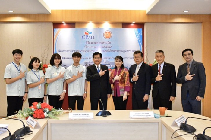 คุณณรงค์ แผ้วพลสง เลขาธิการคณะกรรมการการอาชีวศึกษา (กอศ.) เปิดเผยว่า สำนักงานคณะกรรมการการอาชีวศึกษา (สอศ.) ได้จัดการเรียนการสอนหลากหลายสาขา โดยเฉพาะสาขาวิชาพาณิชยกรรม ที่มีนักศึกษานิยมเรียนเป็นจำนวนมาก ตั้งแต่ระดับปวช. ปวส. และปริญญาตรี จึงจำเป็นที่จะต้องแสวงหาสถานที่ฝึกประสบการณ์ตรง เป็นสถานประกอบการที่ได้มาตรฐาน เพื่อเพิ่มทักษะการปฏิบัติงานให้ผู้เรียนได้อย่างมีคุณภาพ จึงได้มีการลงนามความร่วมมือกับซีพีออลล์ เพื่อเปิดโอกาสให้สถานศึกษาในสังกัด สอศ. จำนวน 23 แห่ง นำนักศึกษาเข้ารับการฝึกประสบการณ์อาชีพภายในร้านสาขาของ บริษัท ซีพี ออลล์ จำกัด (มหาชน) เช่น กลุ่มธุรกิจเครือเจริญ โภคภัณฑ์ และร้าน 7-Eleven