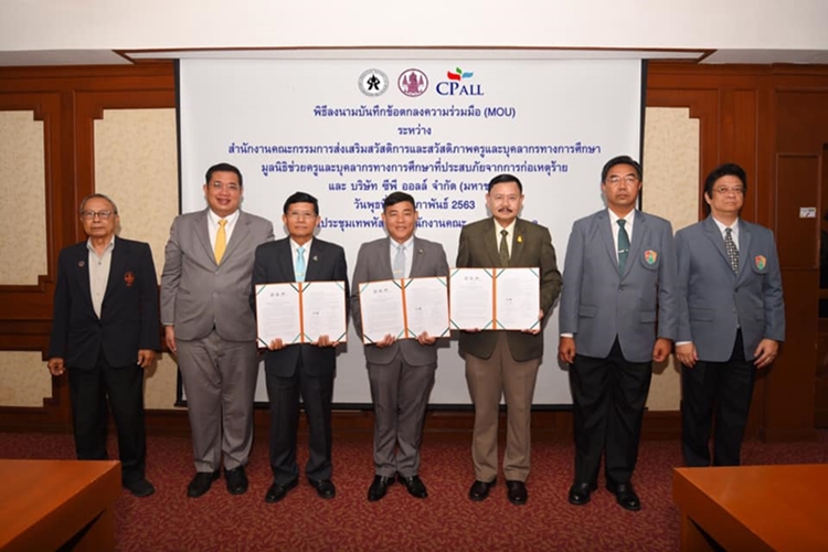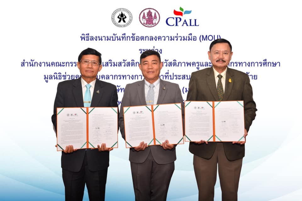บริษัท ซีพี ออลล์ จำกัด (มหาชน) ร่วมกับ มูลนิธิช่วยครูและบุคลากรทางการศึกษาที่ประสบภัยจากการก่อเหตุร้าย จัดพิธีลงนามบันทึกข้อตกลงความร่วมมือ เพื่อสร้างโอกาสทางการศึกษาและการมีอาชีพที่มั่นคงให้กับบุตรหลานในอุปการะของครูและบุคลากรทางการศึกษา โดยมี คุณดิศกุล เกษมสวัสดิ์ เลขาธิการ กศน. ปฏิบัติหน้าที่เลขาธิการคณะกรรมการส่งเสริมสวัสดิการและสวัสดิภาพครูและบุคลากรทางการศึกษา เป็นประธานในพิธี ร่วมลงนามกับ คุณณรงค์ศักดิ์ ภูมิศรีสอาด รองกรรมการผู้จัดการ บริษัท ซีพี ออลล์และผู้แทนผู้รับใบอนุญาตวิทยาลัยเทคโนโลยีปัญญาภิวัฒน์ และคุณองค์กร อมรสิรินันท์ ประธานมูลนิธิช่วยครูและบุคลากรทางการศึกษาที่ประสบภัยจากการก่อเหตุร้าย พร้อมกับตัวแทนทั้งสามฝ่ายร่วมเป็นสักขีพยานในการลงนาม ณ ห้องประชุมเทพหัสดิน สำนักงานคณะกรรมการ สกสค.