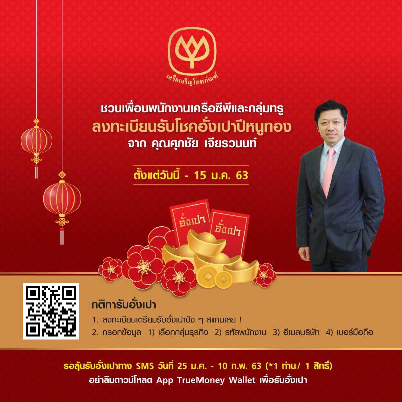 ชวนเพื่อนพนักงานเครือซีพีและกลุ่มทรู เตรียมพร้อมลงทะเบียนรับโชคอั่งเปาปีหนูทองจาก คุณศุภชัย เจียรวนนท์ ตั้งแต่วันนี้ – 15 ม.ค. 63