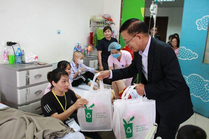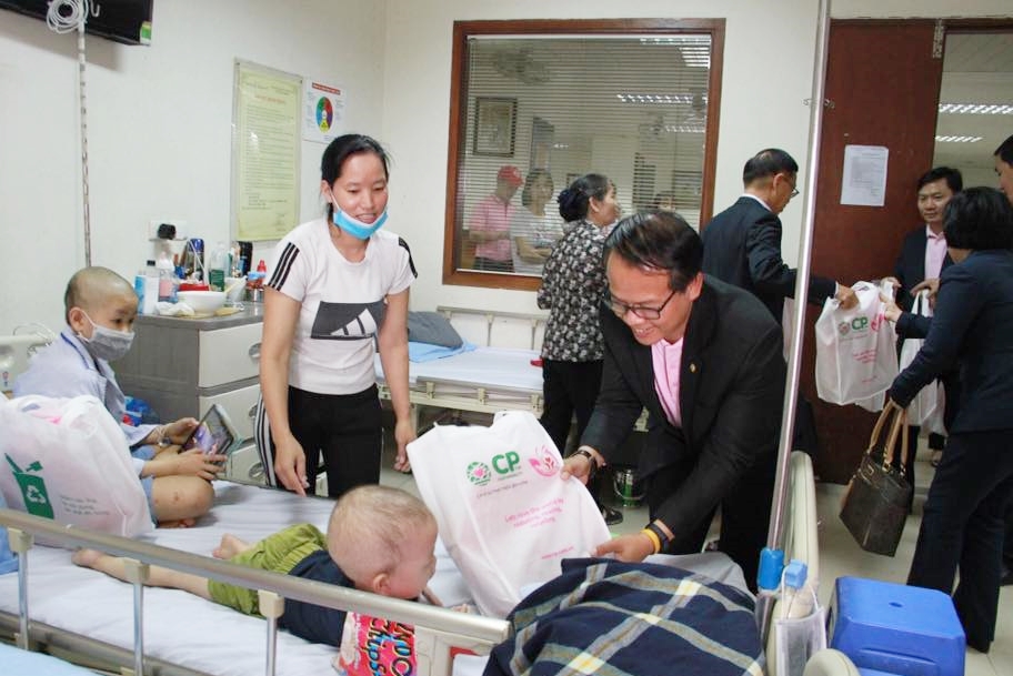 คุณมนตรี สุวรรรณโพธิ์ศรี กรรมการผู้จัดการ นำคณะผู้บริหารและพนักงาน ซีพีเวียดนามเยี่ยมคารวะ Dr.Lam รองผู้อำนวยการสถาบันโลหิตวิทยาแห่งชาติเวียดนาม และเยี่ยมมอบของขวัญให้กำลังใจแก่ผู้ป่วยเด็ก โรคทาลัสซีเมีย