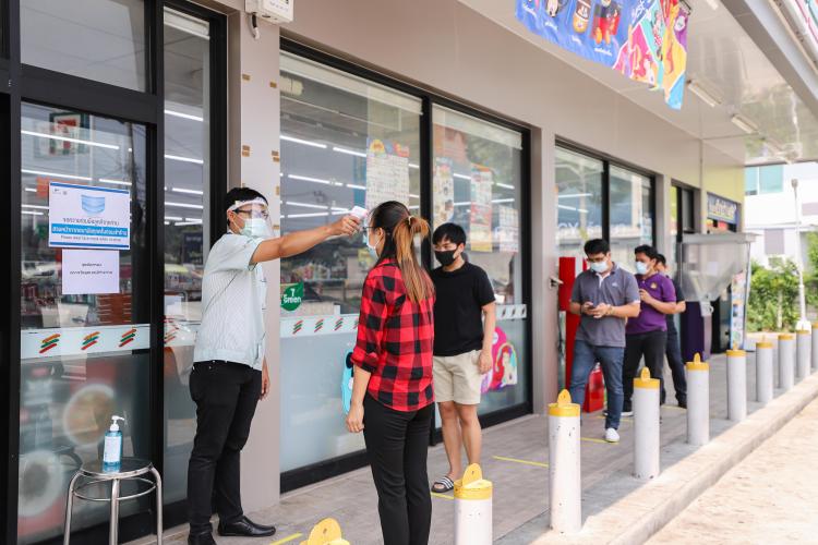 บมจ.ซีพี ออลล์ ผู้ก่อตั้งร้านเซเว่น อีเลฟเว่น ในประเทศไทย เพิ่มมาตรการป้องกันไวรัสโควิด-19 (COVID-19) คุมเข้มคัดกรองลูกค้าเข้าร้าน เพิ่มประสิทธิภาพการเว้นระยะห่างทางสังคม (Social Distancing) จำกัดจำนวนลูกค้าที่เข้ามาใช้บริการ ทำเส้นเว้นระยะต่อคิวให้ลูกค้า ทั้งภายในและภายนอกร้าน วัดอุณหภูมิก่อนเข้าร้าน พร้อมมุ่งเน้นมาตรการด้านการรักษาความสะอาดอย่างต่อเนื่อง เพื่อความปลอดภัยของพนักงานและลูกค้าที่เข้ามาใช้บริการ