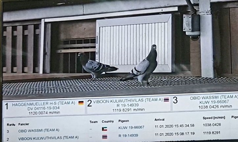ขณะที่อันดับ 2 ห่างจากอันดับ 1 เพียง 0.5 วินาที ตกเป็นของ นกพิราบจากวิบูลย์ กุลธิวิลาศ ทีมเอ ของประเทศไทย เข้าถึงเวลา 15:08:17น. รับเงินรางวัล 800,000 บาท และอันดับ 3 เป็นนกพิราบจาก โอบิด วาสซิม ทีมเอ จากประเทศคูเวต รับเงินรางวัล 500,000 บาท