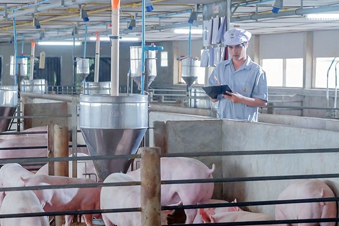 การเลี้ยงสุกร ฟาร์มทั้งหมดเป็นโรงเรือน EVAP และปรับเปลี่ยนโรงเรือนเลี้ยงสุกรแม่พันธุ์อุ้มท้องจากเดิมที่เป็นแบบยืนซอง มาเป็นระบบการเลี้ยงแบบคอกขังรวม เพื่อให้สัตว์ได้อยู่สุขสบายในสภาพแวดล้อมที่ดี