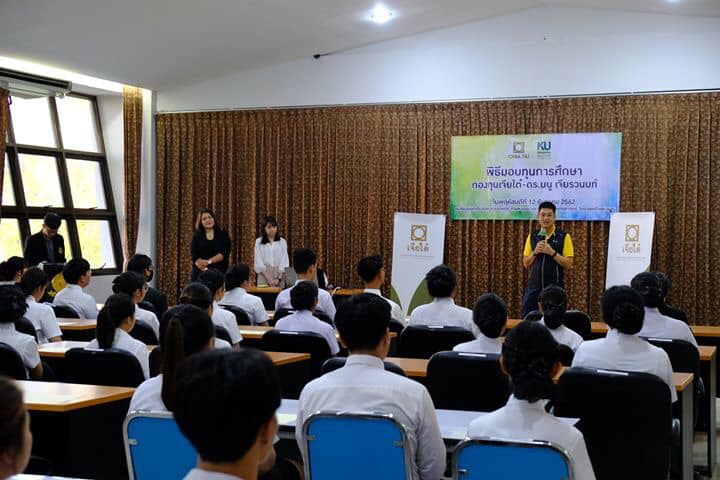 คุณทวีสุข เมฆธวัชชัยกุล ผู้ช่วยกรรมการผู้จัดการ ธุรกิจปุ๋ยเคมี บริษัท เจียไต๋ จำกัด เป็นตัวแทนผู้บริหารมอบทุนการศึกษาทั้งสิ้น 55 ทุน โดยมี ผศ.ดร. ศุภชัย อำคา รองคณบดีฝ่ายสารสนเทศและพัฒนานิสิต คณะเกษตร กำแพงแสน ให้เกียรติรับมอบกองทุนนี้พร้อมกับนิสิตคณะเกษตร กำแพงแสนมหาวิทยาลัยเกษตรศาสตร์