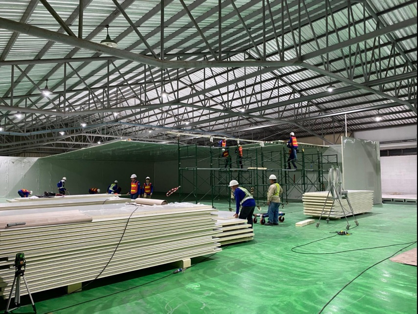 งานคืบหน้ารวดเร็วขนาดนี้ ก็ต้องขอชื่นชมทีมงานทุกคนที่ทุ่มเทกันอย่างเต็มที่ ทำงานกันอย่างไม่รู้จักเหน็ดจักเหนื่อย ตลอด 24 ชั่วโมง ซึ่งต้องขอขอบกำลังใจดีๆ อาหารอร่อยๆครบทุกมื้อ จากเครือข่ายพี้น้องของเรา ซีพี เอฟ ซีพีแรม มาช่วยกันเติมพลังกันสุดๆ เพื่อให้โรงงานหน้ากากอนามัยสำเร็จเสร็จสิ้นตามเป้าหมาย 5 สัปดาห์