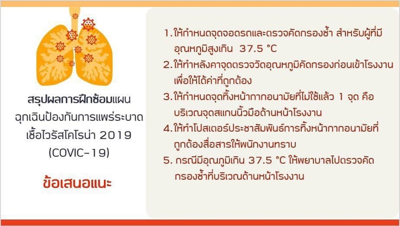 2.กรณีมีผู้ติดเชื้อ COVID-19 หรือมีความเสี่ยงในพื้นที่โรงงาน