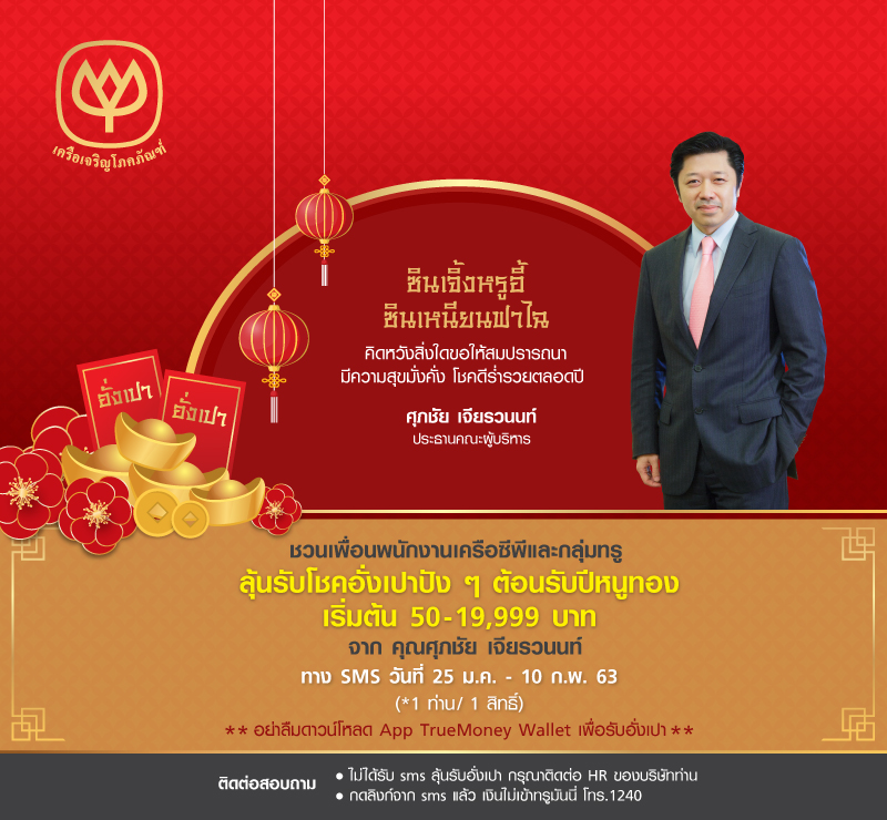 เริ่มต้น 50 – 19,999 บาท จาก คุณศุภชัย เจียรวนนท์ CEO เครือเจริญโภคภัณฑ์ ทาง SMS
