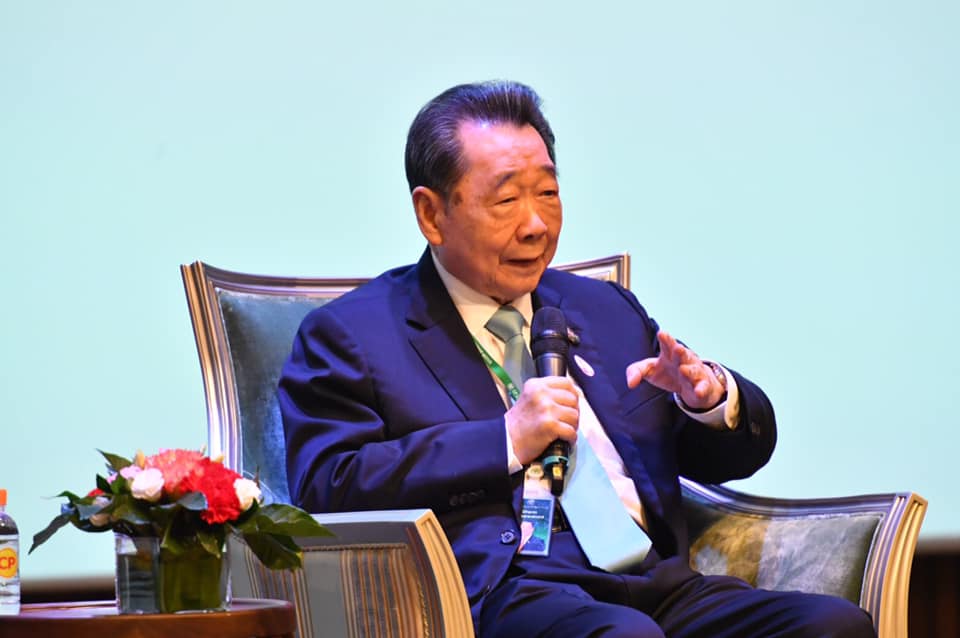 ในการนี้ ท่านประธานอาวุโสได้บรรยายพิเศษหัวข้อ “Shift and Share แบ่งปันความสำเร็จการทำธุรกิจในจีน : กลุ่มเครือเจริญโภคภัณฑ์” ให้แก่คณะผู้เข้าอบรมฯ เพื่อถ่ายทอดและให้มุมมองแนวคิดการทำธุรกิจในจีน โดยกล่าวแนะนำนักธุรกิจไทยที่สนใจเข้าไปลงทุนทำธุรกิจในประเทศจีนยุคนี้ว่า แตกต่างจากกรณีซีพีเข้าไปทำธุรกิจในจีนเมื่อ 40 ปีก่อน ซึ่งซีพีเข้าไปลงทุนเป็นรายแรก เพราะช่วงนั้นเป็นช่วงที่จีนกำลังเปิดประเทศ ถือเป็นโอกาสที่ดี อีกทั้งตลาดมี Demand สูงเพราะต้องการพัฒนาและเร่งการเติบโต แต่ปัจจุบันนี้ไม่ใช่จะใช้เพียงเงินทุนแล้วคิดว่าจะสำเร็จได้ เพราะจีนวันนี้มีเงินมหาศาลและการเข้าไปทำธุรกิจต้องสู้กับคนเก่งทั่วโลกที่เข้ามาแข่งลงทุนในจีน และยังมีนักลงทุน นักธุรกิจชาวจีนที่แข็งแกร่งอีก รวมถึงรัฐวิสาหกิจจีนที่ดำเนินธุรกิจต่างๆ อีก