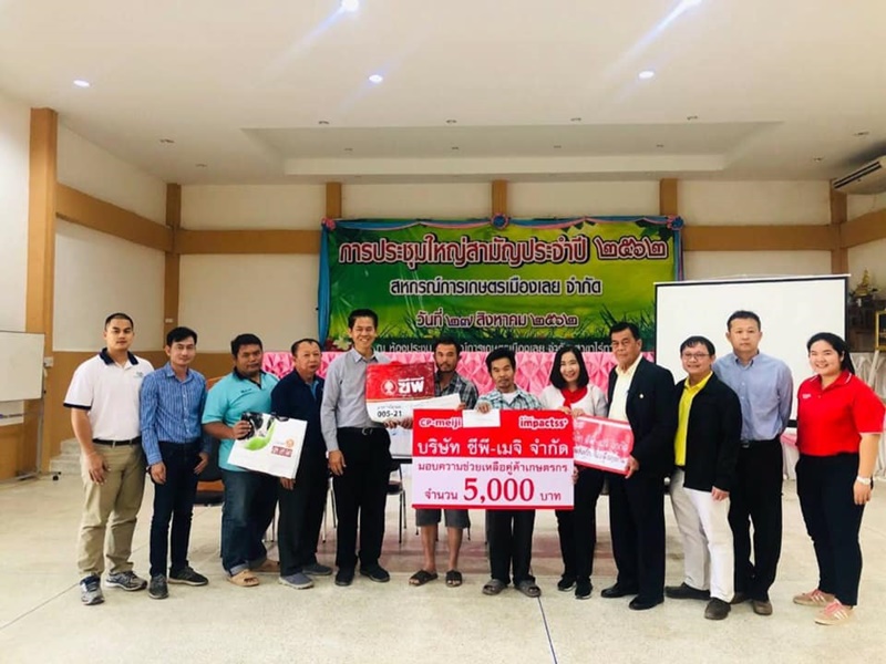 นายสัตวแพทย์ สุปัญญา บุตรพรหม ผู้จัดการทั่วไป เป็นตัวแทน บริษัท ซีพี-เมจิ จำกัด ลงพื้นที่ให้กำลังใจแก่เกษตรกรสมาชิกสหกรณ์การเกษตร คู่ค้าน้ำนมดิบ จังหวัดเลย จำนวน 2 ราย ที่ได้รับความเสียหายจากเหตุอัคคีภัยเมื่อวันที่ 22 มกราคม 63 ที่ผ่านมาประกอบด้วย 1.คุณสุรินทร์ แก้วแสนทิพย์ เสียหาย 280,000 บาท 2.คุณอัมพร แก้วแสนทิพย์ เสียหาย 320,000 บาท โดยได้มอบเงินช่วยเหลือเเก่เกษตรกรทั้ง 2 ราย รายละ 5,000 บาท รวมทั้งสิ้น 10,000 บาท เพื่อเป็นการเยียวยาความเสียหายและให้กำลังใจ จากพันธมิตร ซีพี-เมจิ ที่มีให้กับคู่ค้าเกษตรกรตลอดมา