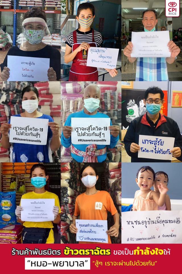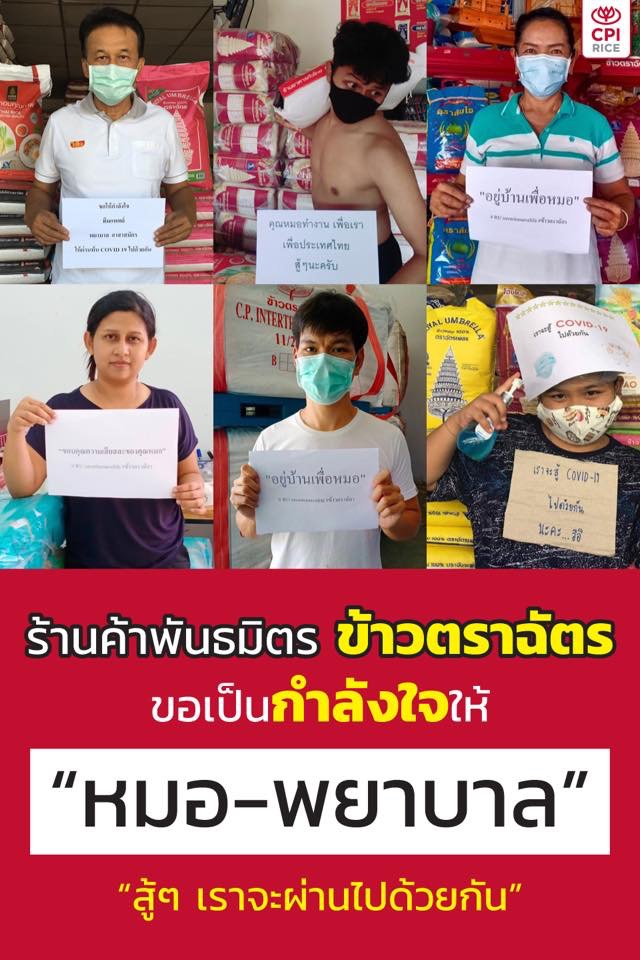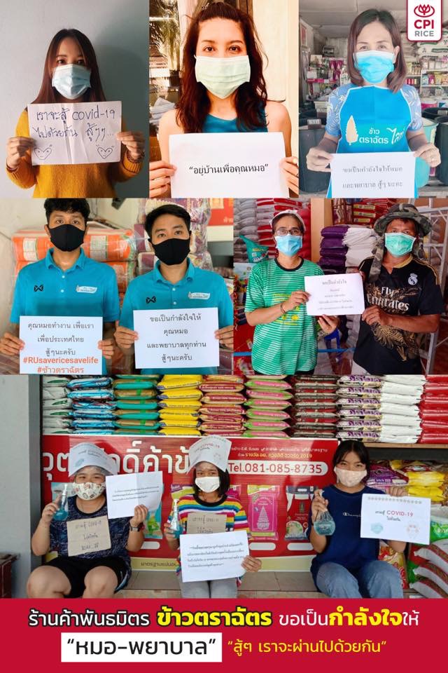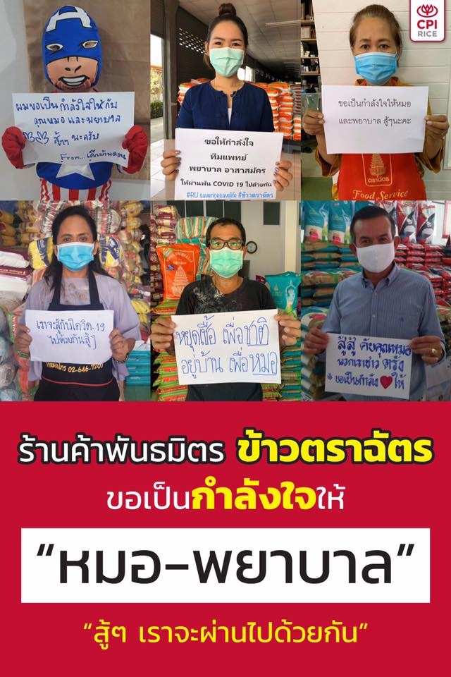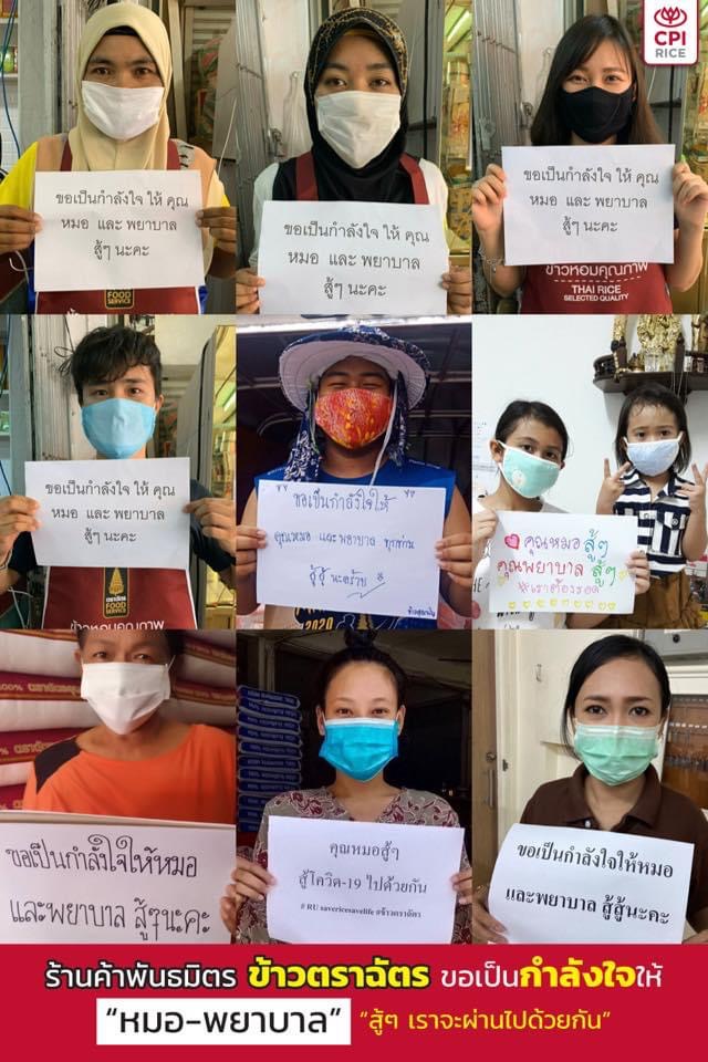 เพจตราฉัตร Family รายงานคู่ค้าพันธมิตร ของข้าวตราฉัตร (ภาคใต้) ร่วมส่งกำลังใจ ให้บุคลากรทางการแพทย์ ที่เสียสละปฏิบัติหน้าที่ดูแลผู้ป่วย และทำงานหนักอย่างต่อเนื่อง ในช่วงสถานการณ์วิกฤต โควิด-19 ให้ผ่านพ้นไปได้ด้วยดี เราจะสู้ไปด้วยกัน