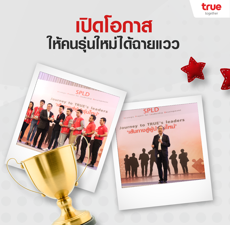 แต่ทรูไม่ได้ให้เราลุยเดี่ยว เพราะที่ทรูมีโครงการพิเศษ SPLD (Strategic Project & Leadership Development) ที่จะช่วยผลักดันและเพิ่มศักยภาพการทำงานให้พนักงานทุกคนก้าวสู่การเป็นผู้นำด้วย เรียกว่าโอกาสทองมาอยู่ตรงหน้า จะคว้าไว้หรือเปล่าก็อยู่ที่ผู้ที่เข้ามาทำงาน