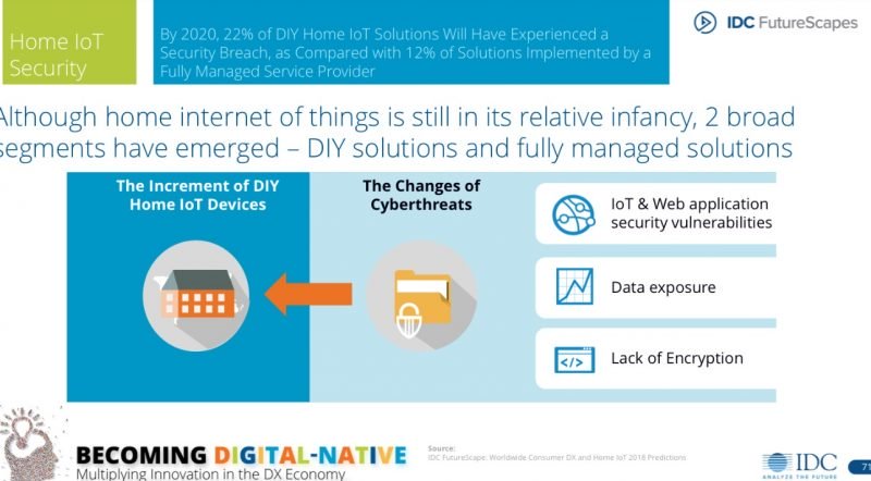 ภายในปี 2563 กว่า 22% ของโซลูชัน IoT ภายในบ้านที่ติดตั้งด้วยตนเองจะถูกเจาะระบบ แต่จะมีเพียง 12% ของโซลูชันไอโอทีภายในบ้านที่ติดตั้งโดยผู้ให้บริการเท่านั้นที่จะถูกเจาะระบบ ต้ฃอมีการทำระบบให้ปลอดภัยมากขึ้น