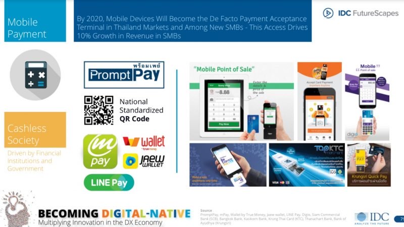 เป็นเรื่องที่ไม่พูดถึงไม่ได้ เพราะเป็นเทรนด์ดาวรุ่งในปันี้ และปีต่อๆ ไป ภายในปี 2563 อุปกรณ์เคลื่อนที่จะกลายเป็นเทอร์มินัลรับชำระเงินในประเทศไทย และในกลุ่มร้านค้า SME โดยการใช้งานนี้จะผลักดันให้รายได้ของผู้ประกอบการขนาดย่อมเติบโตขึ้น 10%