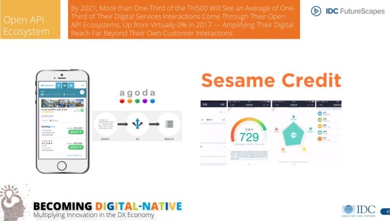 ภายในปี 2564 มากกว่าหนึ่งในสามของ 500 บริษัทที่ใหญ่ที่สุดของไทยจะพบว่าโดยเฉลี่ยแล้วหนึ่งในสามของการใช้งานบริการดิจิทัลของตน จะผ่านระบบเอพีไอแบบเปิด โดยเพิ่มขึ้นจากแทบ 0% ในปี 2560 ซึ่งทำให้สามารถขยายบริการดิจิทัลให้ไปได้ไกลกว่าแค่เฉพาะลูกค้าของตนเท่านั้น