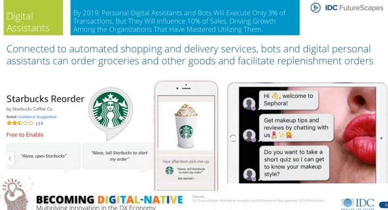 ในช่วงหลายปีที่ผ่านมามีอิมแพ็คจาก Chatbot มาเยอะ และภายในปี 2562 ผู้ช่วยดิจิทัล และบอทจะมีส่วนเกี่ยวข้องเพียงแค่ 3% ของธุรกรรมทั้งหมด แต่จะช่วยสร้าง 10% ของยอดขาย ซึ่งจะช่วยผลักดันให้องค์กรที่ใช้งานเทคโนโลยีนี้ให้เติบโตได้