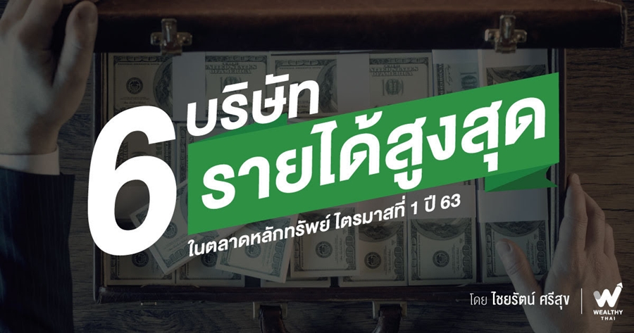 จบไปแล้วสำหรับการประกาศผลการดำเนินงานในไตรมาสที่ 1 ของปี 2563 ของบริษัทจดทะเบียนในตลาดหลักทรัพย์แห่ประเทศไทย ท่ามกลางการแพร่ระบาดของไวรัส COVID-19 ที่กระทบกับผลการดำเนินงานของหลายธุรกิจเป็นอย่างหนัก และเมื่อสิ้นสุดการรายงาน ครั้งนี้ WEALTHY THAI จึงรวบรวมบริษัทที่มีรายได้สูงสุดในตลาดหลักทรัพย์ฯ 6 อันดับแรก (ข้อมูลจากตลาดหลักทรัพย์แห่งประเทศไทย) ให้กับนักลงทุนทุกท่านได้รับทราบกัน