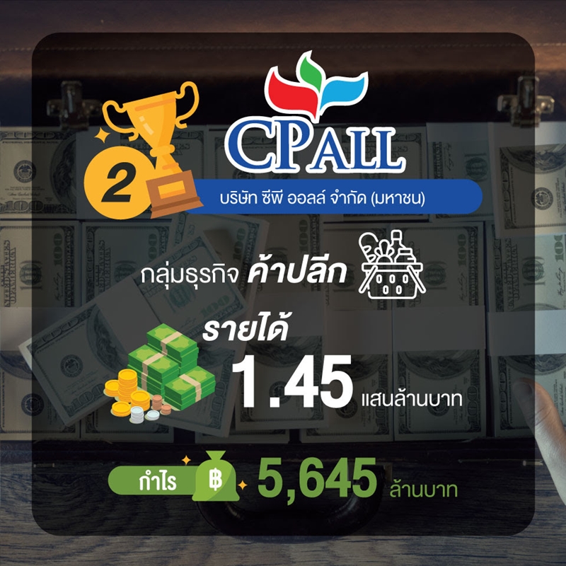 อันดับที่ 2 CPALL มีรายได้ 1.45 แสนล้านบาท