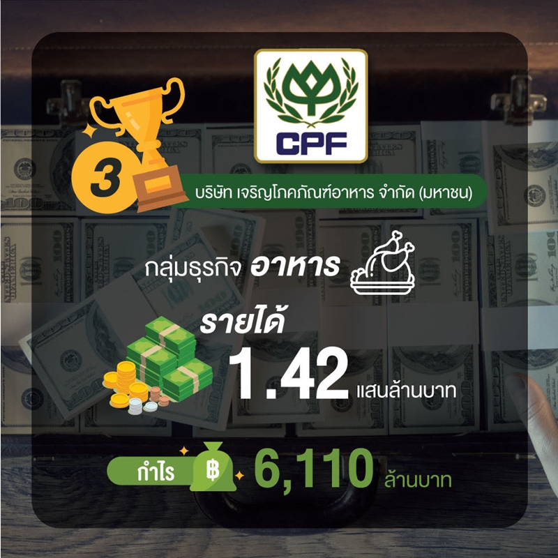 อันดับที่ 3 CPF มีรายได้ 1.42 แสนล้านบาท