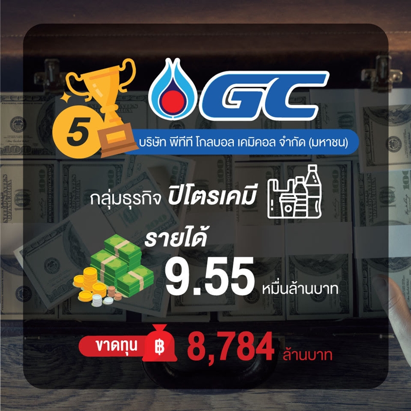อันดับที่ 5 PTTGC มีรายได้ 9.55 หมื่นล้านบาท