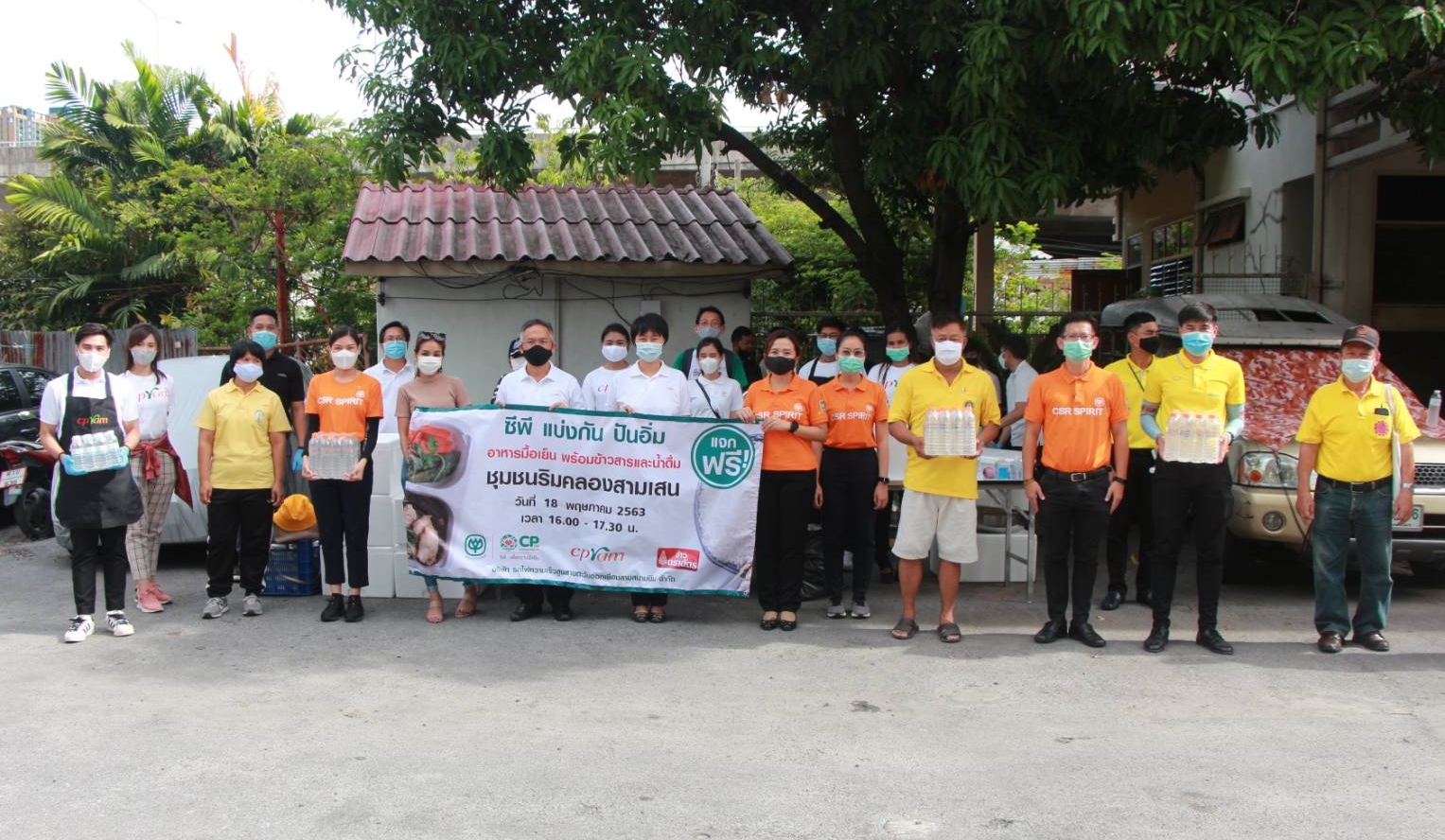 โครงการ “ซีพี แบ่งกัน ปันอิ่ม” เป็นความตั้งใจของกลุ่มผู้บริหารของเครือซีพีและทรู ที่ต้องการจะแบ่งเบาภาระและบรรเทาความเดือดร้อน ของชาวชุมชน ซึ่งได้เริ่มกิจกรรมแรกด้วยการแจกอาหารมื้อเย็นให้แก่ชาวชุมชนรัชดา และในครั้งนี้ ได้ประสานความร่วมมือกับกลุ่มธุรกิจในเครือฯ เช่น บริษัท ซีพี แรม จำกัด ที่ได้นำข้าวกล่องพร้อมน้ำดื่ม, ขนมปัง ซาลาเปา, บริษัท ซีพี อินเตอร์เทรด จำกัด สนับสนุนข้าวตราฉัตร และ บริษัท เอเชีย เอรา วัน จำกัด สนับสนุนน้ำดื่ม เพื่อร่วมส่งมอบน้ำใจและความห่วงใยจากพวกเราชาวซีพีสู่ชุมชนในครั้งนี้