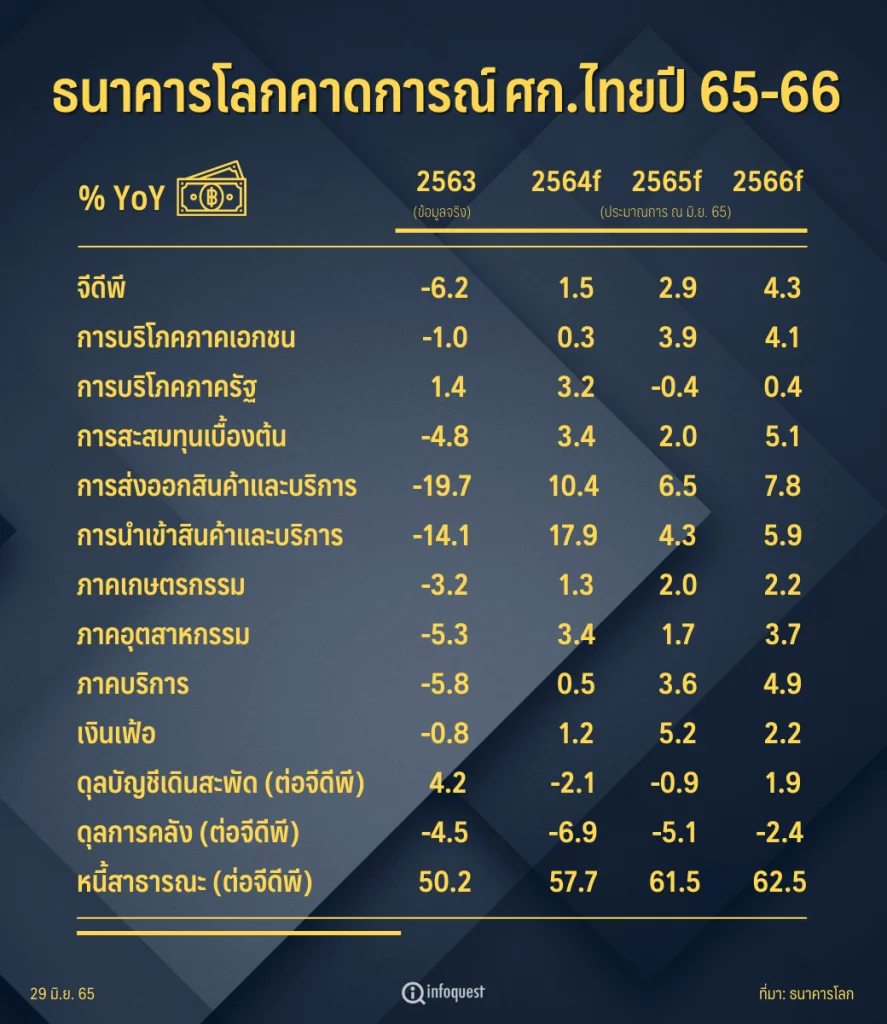 ธนาคารโลก ประมาณการเศรษฐกิจไทยปี 65-66 ณ เดือน มิ.ย. 65