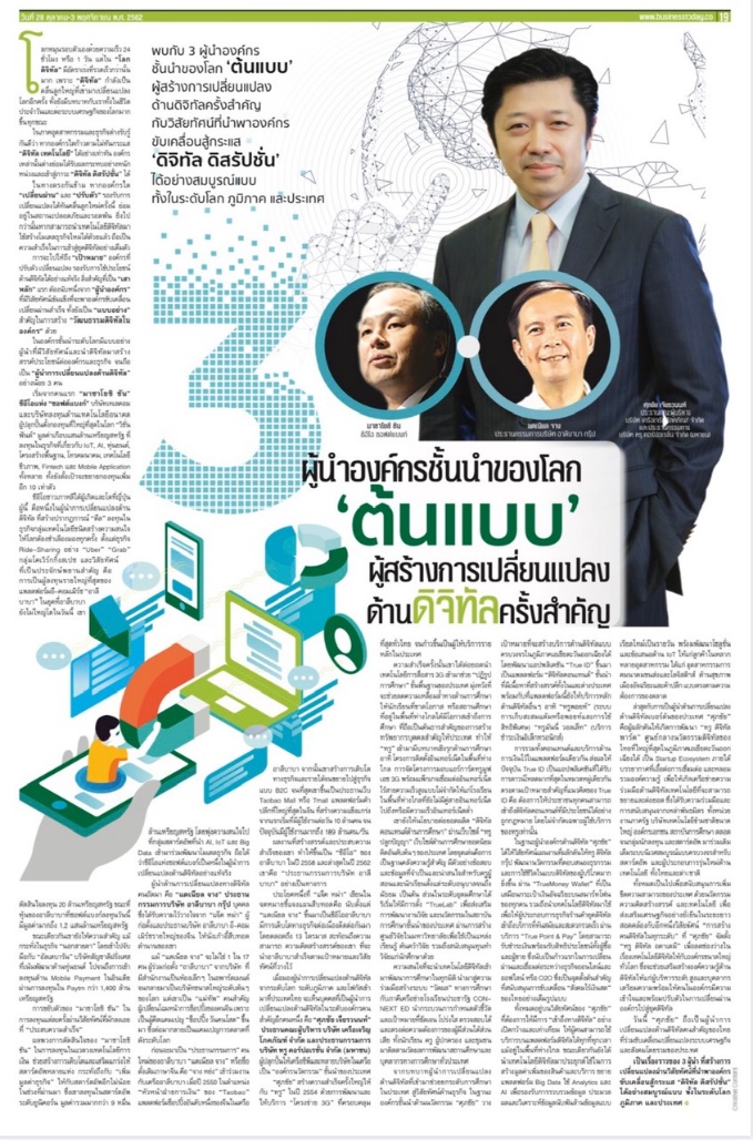 2.คุณศุภชัยยังได้รับการยกย่องให้เป็น 1 ใน 3 ผู้นำองค์กรชั้นนำของโลก “ต้นแบบ” ผู้สร้างการเปลี่ยนแปลงด้านดิจิทัลครั้งสำคัญ