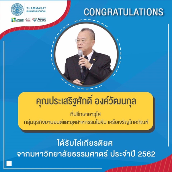9.ธรรมศาสตร์มอบโล่คุณประเสริฐศักดิ์ องค์วัฒนกุลผู้บริหารซีพีผู้ทำคุณประโยชน์ให้มหาวิทยาลัยธรรมศาสตร์ประจำปี2562