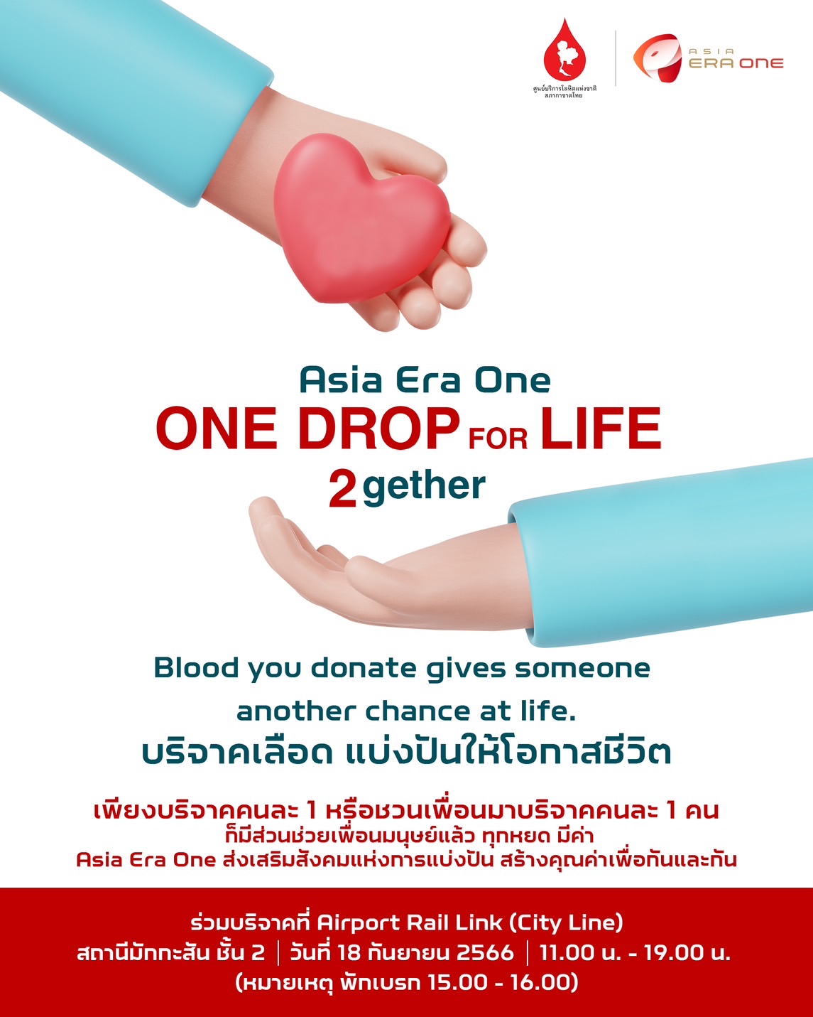 กรุงเทพมหานครฯ – ศูนย์บริการโลหิตแห่งชาติ สภากาชาดไทย ร่วมกับบริษัท รถไฟฟ้า ร.ฟ.ท. จำกัด และ บริษัท เอเชีย เอรา วัน จำกัด ผู้ร่วมลงทุนโครงการรถไฟความเร็วสูงเชื่อมสามสนามบิน และปัจจุบันเป็นผู้ให้การสนับสนุนการเดินรถไฟฟ้าแอร์พอร์ต เรล ลิงก์ ภายใต้การกำกับดูแลของ บริษัท รถไฟฟ้า ร.ฟ.ท จำกัด เชิญชวนชาวไทยรวมพลังร่วมใจบริจาคโลหิตในโครงการ One Drop for Life ร่วมสนับสนุนสภากาชาดไทยในการจัดหาโลหิตสำรอง ด้วยในปัจจุบันปริมาณการจัดหาโลหิตยังไม่สม่ำเสมอ จึงมีการขาดแคลนโลหิตบางช่วงเวลา ส่งผลกระทบทำให้ปริมาณโลหิตสำรองคงคลังไม่เพียงพอ ทั้งในภาวะปกติ และในภาวะวิกฤติที่ต้องใช้โลหิตในการรักษาอย่างเร่งด่วนจำนวนมาก ศูนย์บริการโลหิตแห่งชาติ บริษัท รถไฟฟ้า ร.ฟ.ท. จำกัด และ บริษัท เอเชีย เอรา วัน จำกัด จึงขอเชิญชวน ประชาชนทั่วไป ผู้โดยสาร แอร์พอร์ต เรล ลิงก์ และ พนักงาน ร่วมทำความดี บริจาคโลหิตช่วยต่อลมหายใจให้แก่ผู้ป่วยทั่วประเทศที่กำลังต้องการโลหิตในการรักษาพยาบาล ผู้ที่สนใจสามารถเดินทางด้วยรถไฟฟ้าแอร์พอร์ต เรล ลิงก์ มาลงที่สถานีมักกะสัน และเดินไปยังจุดรับบริจาคโลหิตที่จัดไว้ให้ ณ บริเวณ ชั้น 2 ของตัวอาคารสถานีมักกะสัน ในวันที่ 18 ก.ย. 2566 เวลา 11.00-19.00 น. ติดตามข่าวสารและกิจกรรมและกิจกรรมที่น่าสนในจากแอร์พอร์ต เรล ลิงก์ ได้ที่ ได้ที่ เฟซบุ๊ค @AirportRailLink
