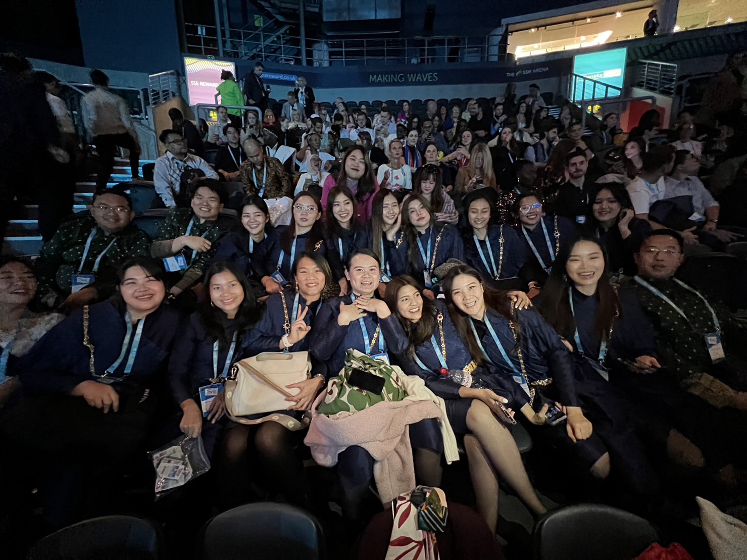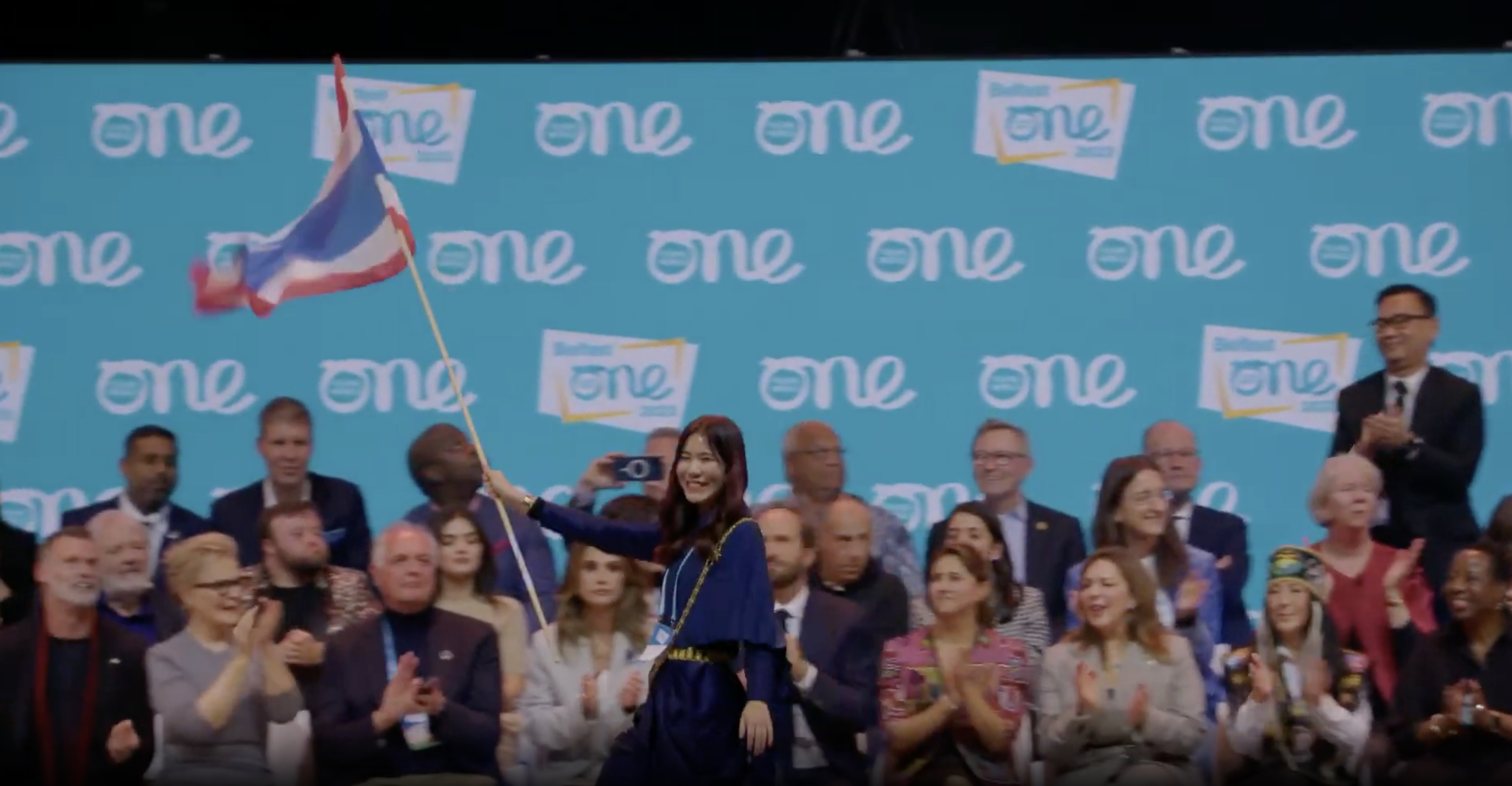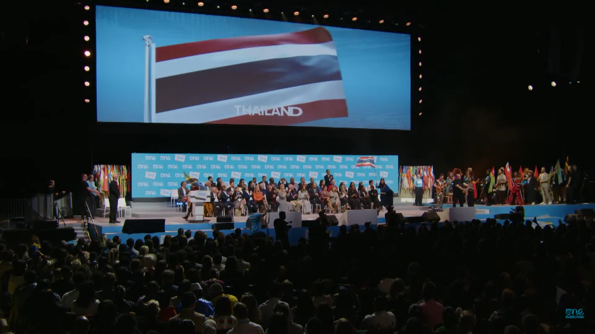 สำหรับบรรยากาศช่วงท้ายของพิธีเปิด One Young World Summit 2023 เป็นธรรมเนียมของทุก ๆ ปี ที่ให้ตัวแทนผู้นำเยาวชนจากแต่ละประเทศที่เข้าร่วมการประชุมเชิญธงขึ้นบนเวที รวมถึงธงไตรรงค์ของประเทศไทย ซึ่งถูกเชิญธงโดยตัวแทนผู้นำเยาวชนรุ่นใหม่จากเครือซีพี ซึ่งบรรยากาศของการจัดงานเป็นไปอย่างอบอุ่น สร้างการมีส่วนร่วม และช่วยสร้างสัมพันธ์ที่ดีระหว่างผู้นำรุ่นใหม่จากกว่า 190 ประเทศ สร้างความประทับใจให้กับผู้เข้าร่วมงานเป็นอย่างมาก